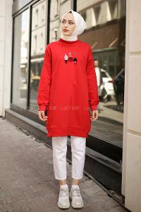 Modalamelif Üç Kadın Baskılı Sweat Kırmızı