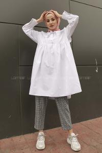 Lamelif Lopez Balon Kol Tunik Beyaz