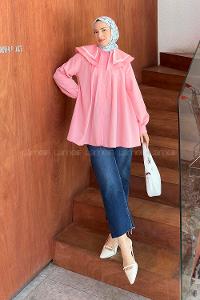 lamelif Piliseli Uzun Gömlek Şeker Pembesi