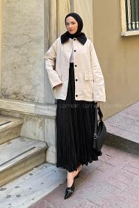 Lamelif Yaka Detaylı Parka Taş Rengi