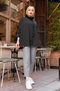 Lamelif Omuz Vatka Detaylı Tesettür Gömlek Siyah