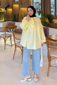 Lamelif Yaka Fular Detaylı Gömlek Sarı
