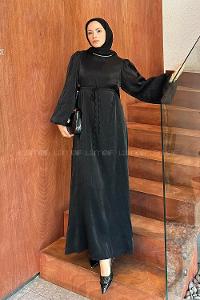 Lamelif Toka Detaylı Tesettür Elbise Siyah