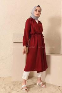Modalamelif Yan Belden Bağlamalı Ayrobin Trenç Bordo