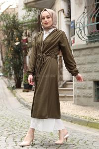 Lamelif Kol Kemerli Kısa Trençkot Haki
