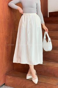 Lamelif Yandan Cepli Parçalı Tesettür Etek Beyaz