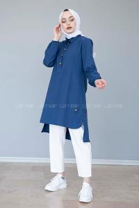Modalamelif Yanı Patlı Yarım Düğmeli Tunik İndigo