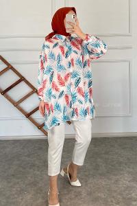 Modalamelif Yaprak Desen Gömlek Buz Mavisi