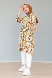 lamelif Piliseli Uzun Gömlek Acı Kahve
