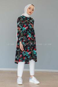 Modalamelif Yaprak Desen Tunik Siyah