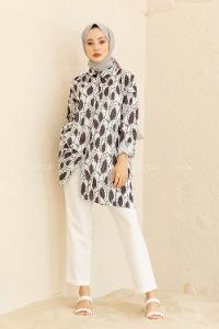 Modalamelif Yaprak Desenli Gömlek Siyah Beyaz