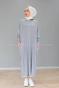 Modalamelif Yarasa Kol Çizgili Salaş Tunik Gri