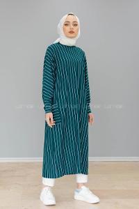 Modalamelif Yarasa Kol Çizgili Salaş Tunik Zümrüt Yeşili