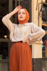 Lamelif Sedef Balon Kol Gömlek Taş Rengi