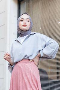 Modalamelif Yarasa Kol Gömlek Yaka Bluz Gri