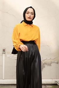 Modalamelif Yarasa Kol Gömlek Yaka Bluz Hardal Sarısı