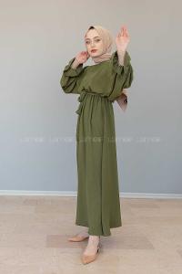 Modalamelif Yarasa Kol Kemer Detaylı Elbise Haki