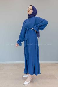 Modalamelif Yarasa Kol Kemer Detaylı Elbise İndigo