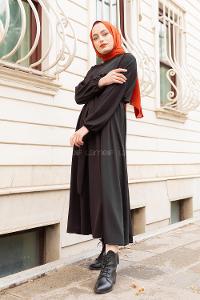Lamelif Taş Detaylı Tesettür Elbise Siyah