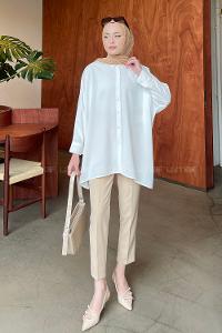 Lamelif Yarasa Kol Kolye Aksesuar Gömlek Beyaz
