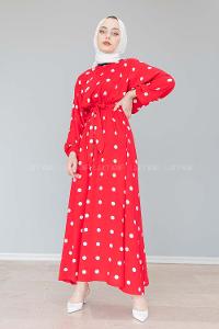 Modalamelif Yarasa Kol Puantiye Desenli Elbise Kırmızı