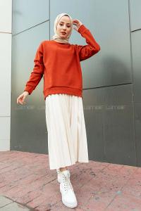 Modalamelif Yarım Balıkçı Yaka Düz Renk Sweat Kiremit