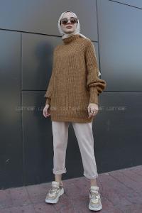 Modalamelif Yarım Boğazlı Balon Kol Kazak Camel