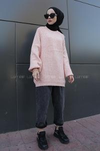 Modalamelif Yarım Boğazlı Balon Kol Kazak Pudra