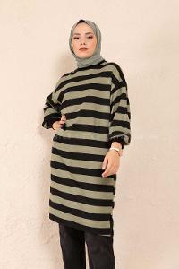 Modalamelif Yarım Boğazlı Balon Kol Tunik Haki