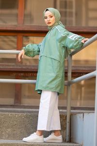Modalamelif Yarım Fermuarlı Kapşonlu Tunik Çağla Yeşili