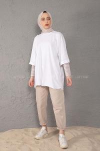 Lamelif DİLVİN 3504 Bisiklet Yaka Penye T-Shirt Ekru