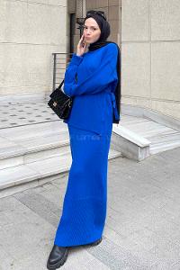Lamelif Yelekli Triko Elbise Saks Mavisi