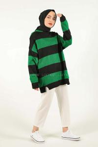 Modalamelif Yeşil Kontrast Triko Kazak