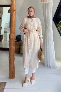 Lamelif Yırtmaç Detaylı Uzun Tesettür Tunik