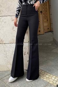 Lamelif Yüksek Bel İspanyol Paça Gizli Cep Pantolon Siyah
