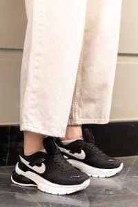 siyah bağcıklı, siyah beyaz yüksek taban detaylı spor ayakkabı
