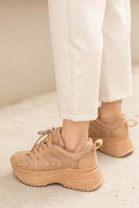 Modalamelif  Yüksek Taban Vizonrengi Spor Ayakkabı