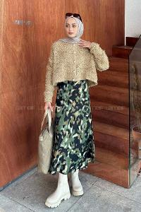 Lamelif Baklava Desen Düğmeli Hırka Haki