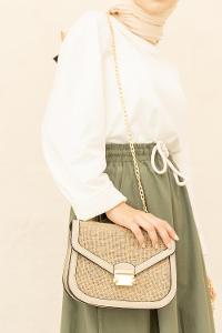Modalamelif Zincir Askılı Hasır Çanta Vizonrengi