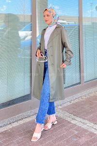 Lamelif Fiyonk Detaylı Trençkot Haki