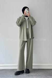 Lamelif Sırt Fermuar Detaylı Pantolonlu Takım Haki