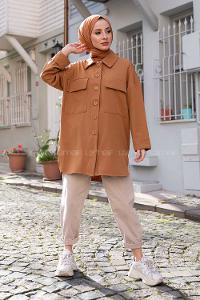 Lamelif Manşeti Biyeli Tunik Acı Kahve