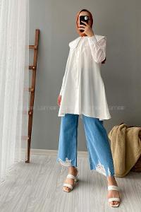 Modalamelif Önü Düğmeli Yaka Detaylı Tunik Ekru