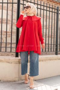 Modalamelif Önü Düğmeli Yaka Detaylı Tunik Kırmızı