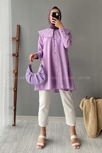 Modalamelif Önü Düğmeli Yaka Detaylı Tunik Lila
