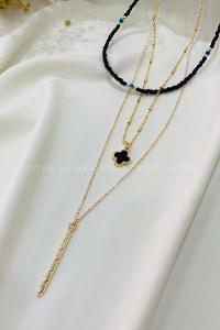 Lamelif Gold Doğal Taş 3lü Kombin Kolye Seti