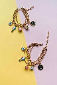 Lamelif Gold Çokrenkli Sallantılı Nazar Boncuk Zarif Bileklik