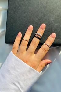 Lamelif Gümüş 7li Kombin Sallantılı Yüzük Seti