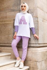 Modalamelif A Nakış Detaylı İkili Takım Lila