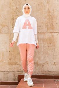 Modalamelif A Nakış Detaylı İkili Takım Pembe